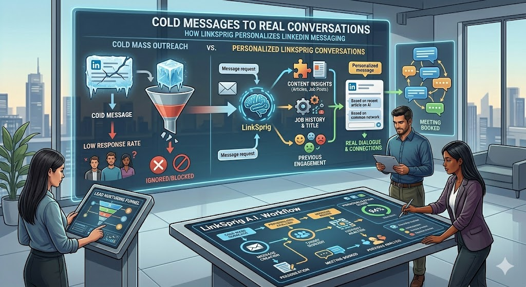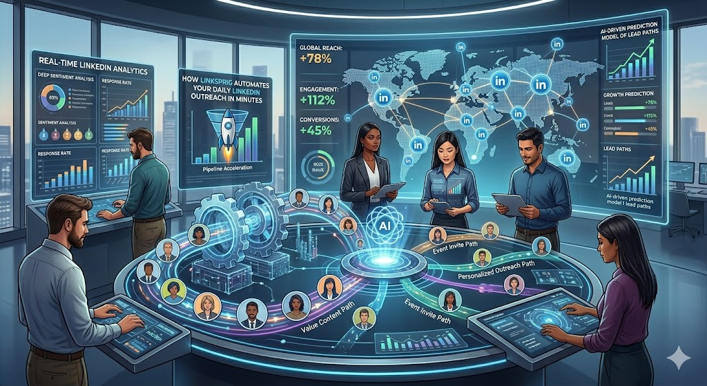 LinkedIn Sales Automation Strategy for Startups, Agencies & Solopreneurs Building a predictable sales pipeline used to require: Today, LinkedIn has replaced traditional prospecting for many businesses. But here’s the challenge: Most startups and agencies don’t fail because LinkedIn lacks opportunity — they fail because outreach becomes inconsistent. Sales automation solves this problem. LinkSprig introduces a modern LinkedIn automation strategy designed specifically for lean teams that need results without large sales departments. What Is LinkedIn Sales Automation? LinkedIn sales automation uses software to handle repetitive activities like: Automation acts like a digital assistant that keeps outreach running continuously while founders focus on closing deals. LinkSprig enhances this concept by adding AI-driven personalization and pipeline building. Core Strategy Behind LinkSprig Automation Define Ideal Customer Profile Users specify industry, role, company size, and geography. Automated Prospect Discovery AI identifies relevant decision-makers automatically. Personalized Outreach Campaigns Messages adapt to audience context instead of using generic templates. Continuous Follow-Up System Automation ensures no lead goes cold. Pipeline Development Every conversation becomes part of a structured sales process. Why Startups & Agencies Need Automation Automation turns LinkedIn into an always-on growth engine. Benefits of LinkSprig Strategy Manual vs Automated LinkedIn Sales Aspect Manual Strategy Automated with LinkSprig Daily Prospecting Time-consuming Automatic Messaging Repetitive AI-generated Follow-ups Missed often Scheduled Lead Tracking Messy Organized Scalability Low High Automation Strategy Business Type Traditional Method LinkSprig Method Startup Founder outreach Automated prospecting Agency SDR hiring AI outreach Solopreneur Random networking Structured pipeline Sales Team CRM-heavy workflow Integrated automation Final Thoughts The biggest advantage startups have today is speed. Companies that automate intelligently: LinkSprig allows small teams to operate like enterprise sales organizations — without enterprise budgets. Automation doesn’t replace selling. It removes friction from selling. FAQs Is automation safe for LinkedIn?Yes, when used responsibly with realistic activity levels. Can solopreneurs benefit?Yes , automation is especially powerful for one-person businesses. Does LinkSprig replace CRM tools?No. It complements CRM systems by generating conversations. How fast can results appear?Many users see increased engagement within weeks. Is it only for B2B companies?Primarily yes, but consultants and recruiters also benefit.